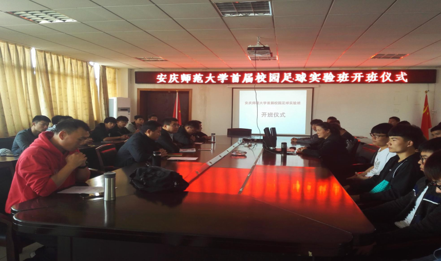 11月14日中午,sunbet申博在龙山校区体育馆会议室举行校园足球实验班开班仪式。sunbet申博党政班子成员、校园足球发展研究中心全体老师、37名校园足球实验班学员参加开班仪式。开班仪式由sunbet申博党总支副书记、校体艺委委员、校园足球发展领导小组副组长、校园足球发展研究中心主任周多奇主持。