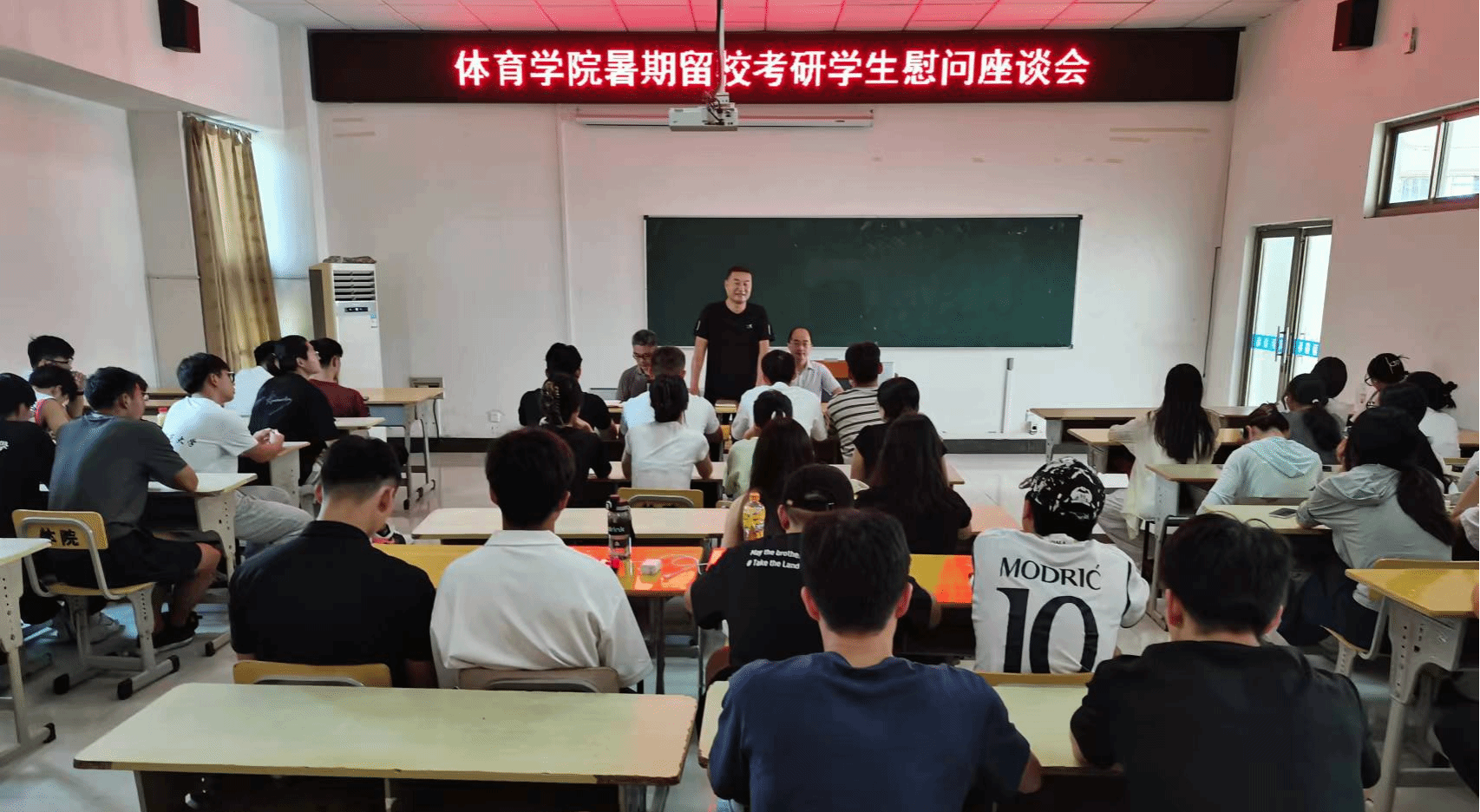 7月23日,sunbet申博院长周多奇、党委副书记王玮和副院长王晓东一行深入教室、健美操馆和舞蹈房,召开留校考研学生座谈会,并走访慰问了暑期赛事集训学生。