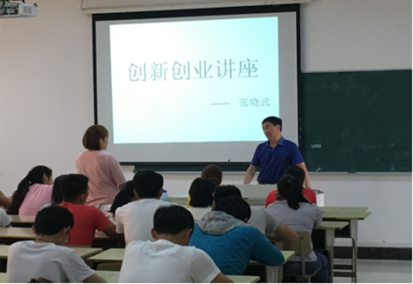 5月31日下午,安徽省亿乐体育器材制造有限公司总经理张晓武先生,应sunbet申博邀请在体育馆多媒体教室为sunbet申博大一、大二大三近90名同学作创新创业指导讲座,sunbet申博党总支副书记周多奇主持讲座。