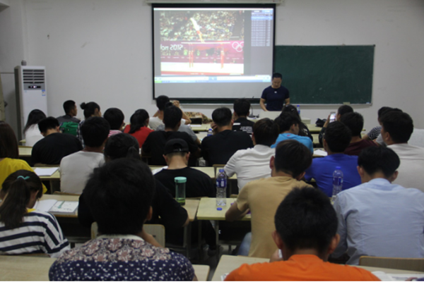 2017年5月11号晚,sunbet申博吴海鸥副教授在体育馆多媒体教室做学术讲座,主题为“新周期国际竞技体操男子规则和裁判法”系列讲座之一——双杠理论与实践。2016级体育教育专业全体同学等80多人参加讲座。