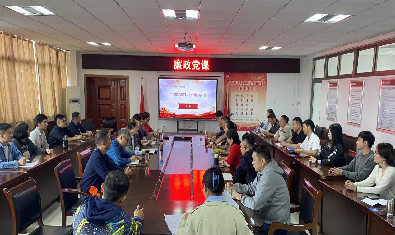 10月17日,sunbet申博党委书记王玮在体育馆三楼会议室讲授了党风廉政专题党课。学院党委领导班子、全体教职工参加并聆听了党课。