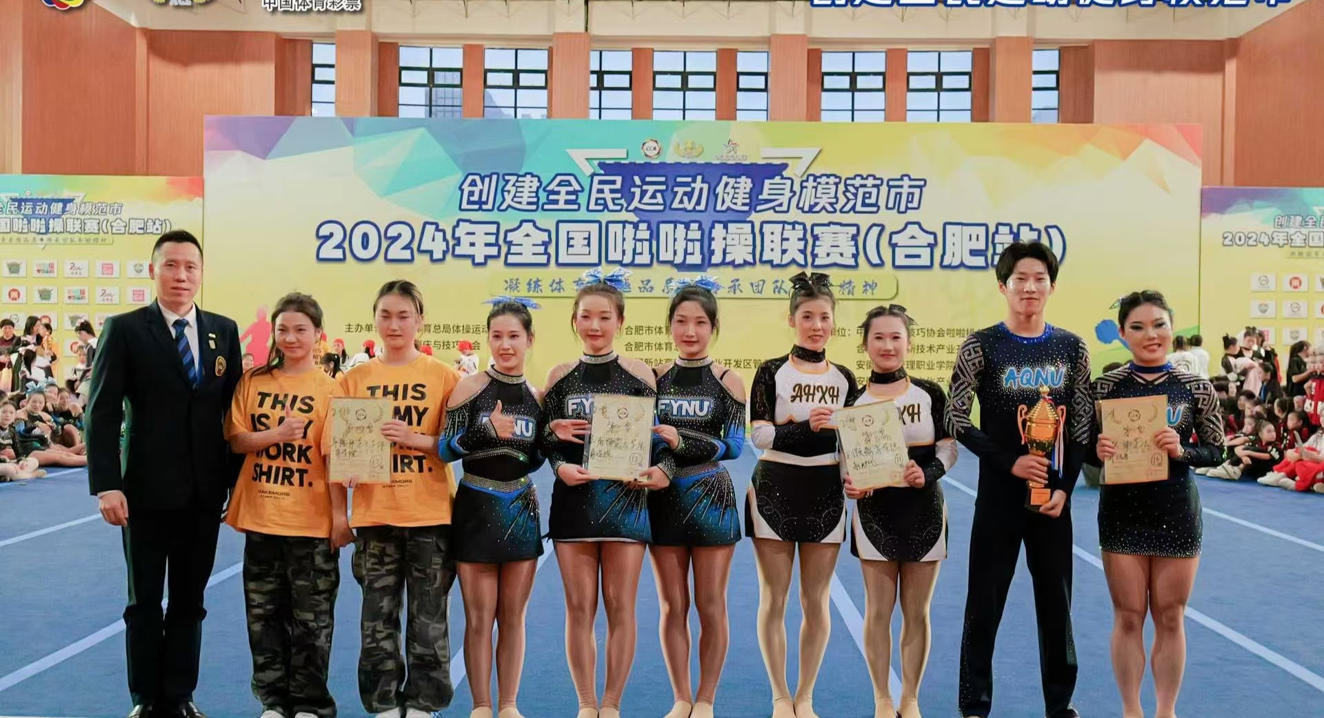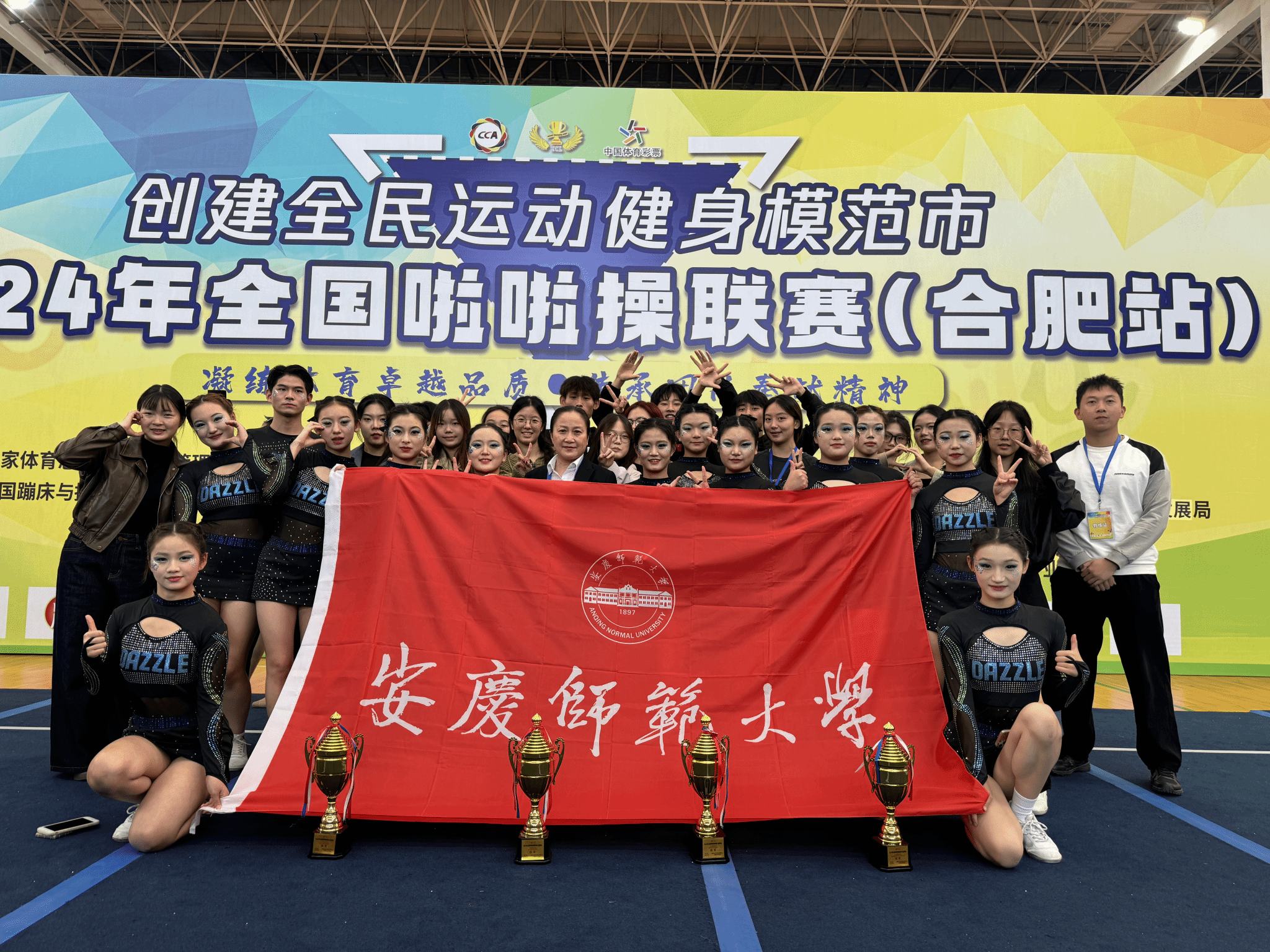 10月19日,由国家体育总局体操运动管理中心主办的全国啦啦操联赛(合肥站)在安徽城市管理职业学院盛大开幕。本次比赛为期两天,吸引了来自全国高校、中小学、幼儿园、俱乐部等 131 支参赛队伍,共计 3000 余人参与角逐。