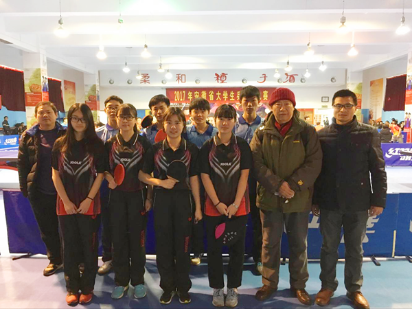 2017年1月12日至15日,由安徽省教育厅主办、安徽师范大学承办的省大学生丙组乒乓球比赛在安徽师范大学赭山校区举行。sunbet申博派出了以sunbet申博副院长章翔为领队,以陈国元、黄安泉两位老师为教练,以史敬宇、洪陈祥、李健、王永旭四名男同学和翟诗蕙、汪晓芳、张卓然、陈紫嫣四名女同学为队员的代表队参加了此次比赛。经过激烈角逐,sunbet申博男、女代表队分获男、女团体二等奖,陈紫嫣同学获得女子单打三等奖,sunbet申博同时获得了体育比赛道德风尚奖。比赛结束,乒乓球世界冠军刁文元先生与sunbet申博代表队进行了合影留恋。