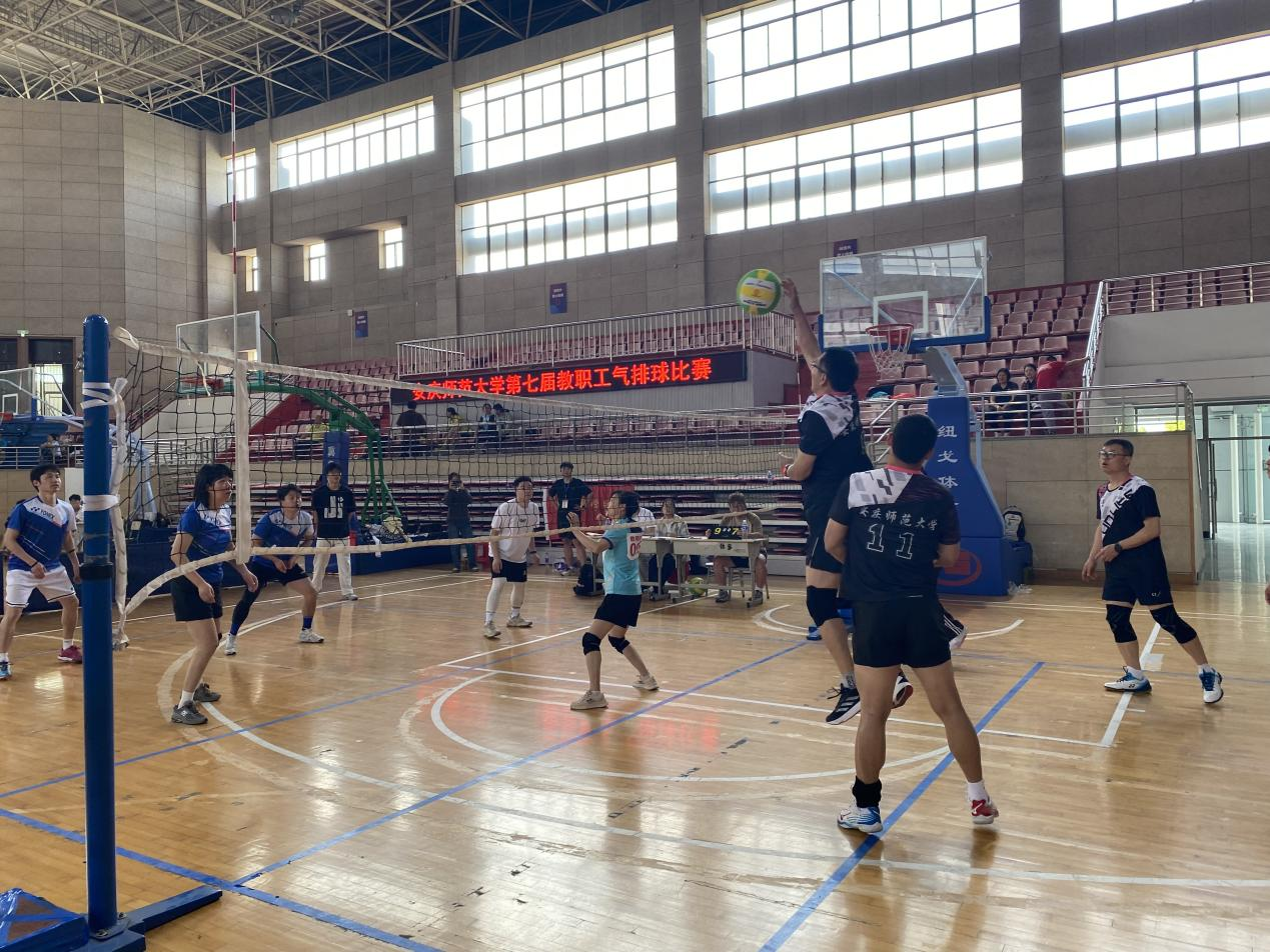 4月26日,由校工会主办的sunbet申博第七届教职工气排球比赛在龙山校区体育馆内举行。来自15个分工会130余名教职工积极参与了的35场激烈比赛,sunbet申博分工会组织了两支教工代表队参加了比赛。