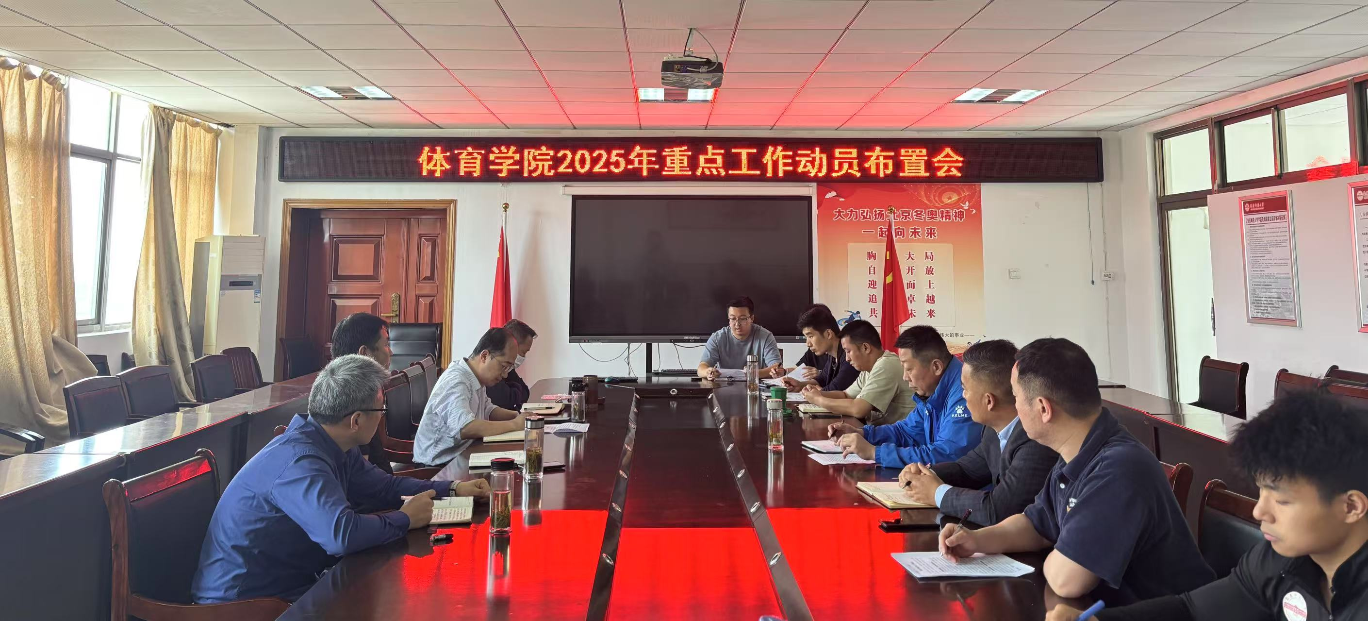 4月25日,sunbet申博在体育馆三楼会议室召开2025年重点工作动员布置会。体育学院党政领导班子、各科室负责人参加会议,会议由sunbet申博党委书记王玮主持。
