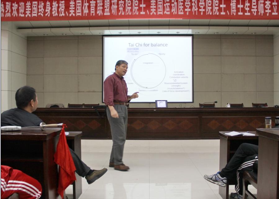 11月21日下午,美国佐治亚南方大学李立教授在行政楼一楼会议室做了题为“太极拳为什么能够改善老年人的平衡能力”的学术报告。sunbet申博一百多位师生聆听了报告。
