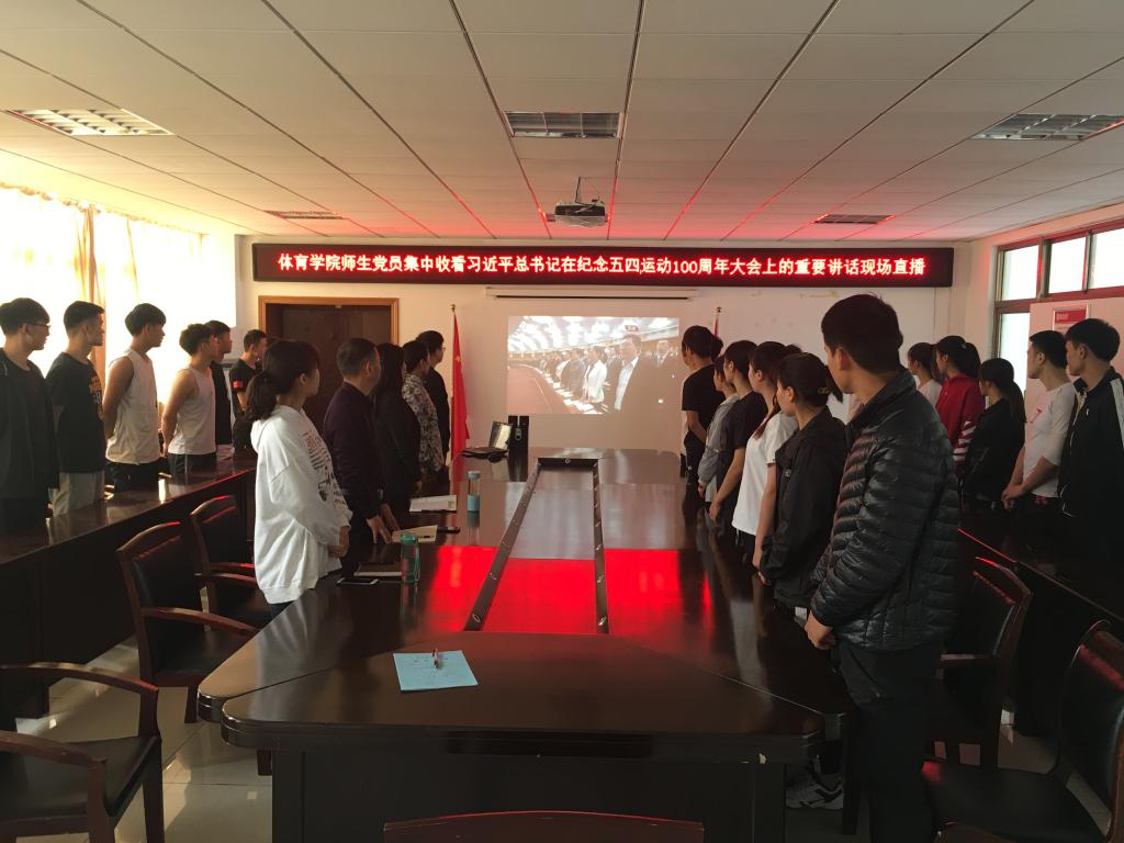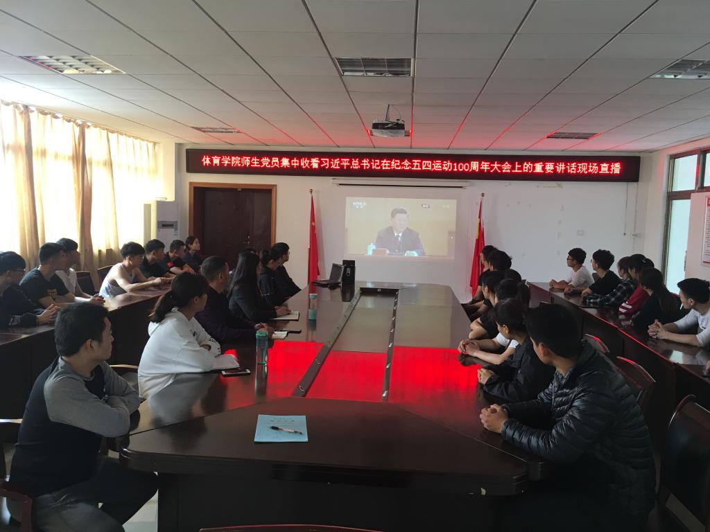 4月30日上午,纪念五四运动100周年大会在北京举行,习近平总书记出席大会并发表重要讲话。sunbet申博党委组织师生党员在体育馆三楼会议室收看大会盛况并进行了学习交流。