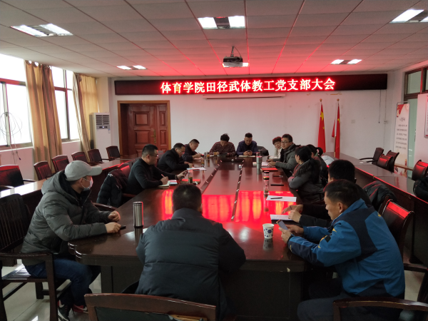1月6日,sunbet申博田径武体教工支部在体育馆三楼会议室召开支部党员大会,邀请学院党委委员、院长章翔为支部党员上党课。