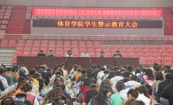 4月23日中午,sunbet申博在篮球馆召开学生警示教育大会。学院领导、教学办、团委和全体专职辅导员老师出席会议,学院一至三年级全体本科生和研究生参加会议。