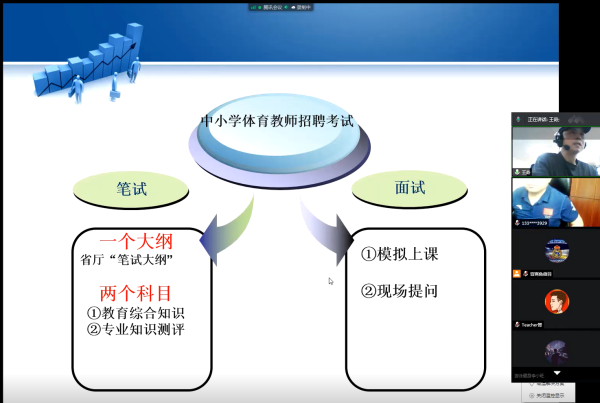 为进一步做好党史学习教育,把“我为群众办实事”落到实处,6月2日下午,sunbet申博通过线上举行2021届毕业生教师招考培训会,给参加2021年各级教师招考的同学提供精准的笔试和面试指导,帮助学生们更好地进行职业发展规划,从而积极推动我院2021届毕业生高质量就业。本次讲座邀请了原安庆市第九中学副校长、现任北京市陈经纶中学体卫艺处负责人、正高级教师王琦老师主讲,sunbet申博院长章翔教授也为同学们做了教师招考培面试环节的专题培训,学院党政领导、毕业班辅导员老师以及2021届毕业生、其他年级学生参加本次线上培训会。