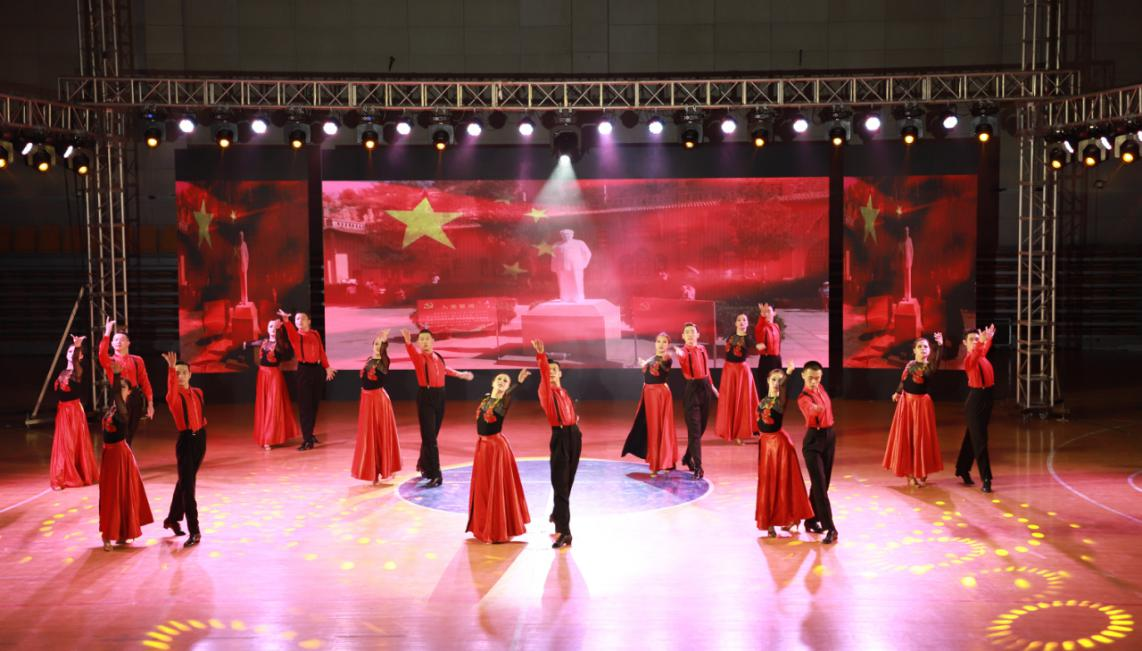 “五星红旗,你是我的骄傲,五星红旗,我为你自豪......”6月23日晚7时,庆祝中国共产党成立100周年--sunbet申博2018级体育表演专业汇报演出暨第二届“舞动青春.踏梦前行”毕业晚会在sunbet申博篮球馆举办,表演(体育艺术表演方向)专业2018级(1)(2)(3)班80余名学生参与演出。sunbet申博党政领导、师生代表、家长代表和校内外观众500余名观看演出。