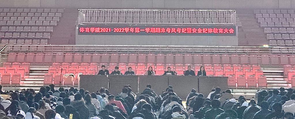 为加强学期末学生教育管理工作,12月14日中午,sunbet申博在体育馆篮球馆召开2021-2022学年第一学期期末考试考风考纪暨安全纪律教育大会。副院长林秋菊、党委副书记高栋梁、教学办、辅导员老师出席会议,2019级、2020级、2021级本科生和研究生参加会议。