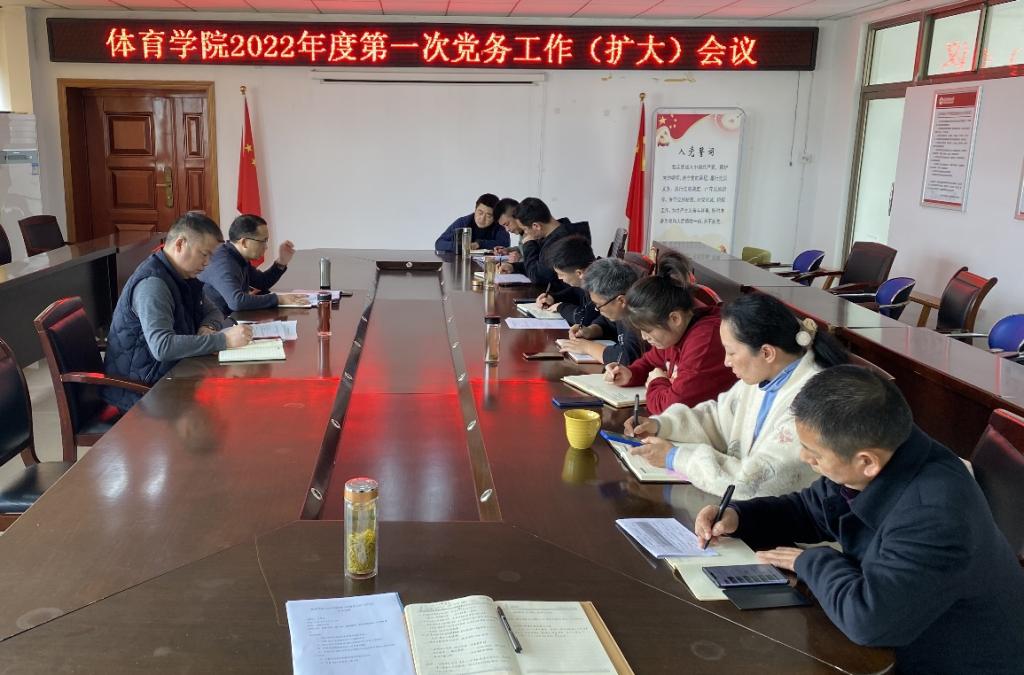 为全面落实学校党委要求,进一步推进学院申博sunbet官网,3月4日下午,我院在体育馆三楼会议室召开了2022年度第一次党务工作(扩大)会议。学院党委书记王开友、党委副书记高栋梁、党委秘书、全体党支部书记和辅导员出席本次会议,会议由王开友主持。