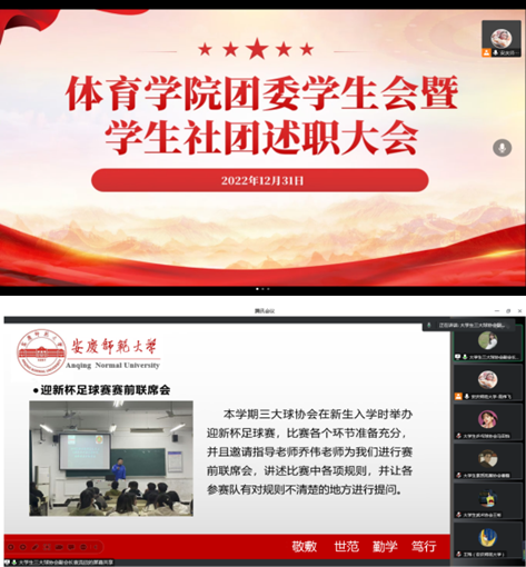 2022年12月31日,sunbet申博召开2022年度学生组织述职评议线上会议。学院党委副书记王玮出席会议并作指导,学院团委负责人、部分社团指导教师、学院学生会主席团成员、6个学生社团负责同学参加了会议。会议由团委负责人高伟飞老师主持。
