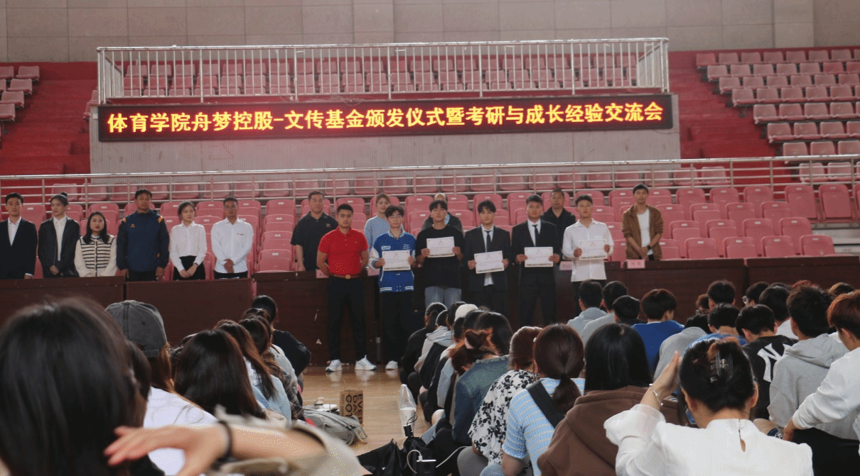 5月10日,sunbet申博在篮球馆举办了“舟梦控股—文传”基金颁发仪式暨国家奖学金获得者事迹宣讲仪式。sunbet申博党委副书记、纪委书记王玮,2013届校友、sunbet申博“舟梦控股—文传”基金设立人陈雨洋,全体专职辅导员老师出席会议,2021年国家奖学金获得学生陶素霞、2022年“舟梦控股—文传”基金受助学生和全体2020级、2021级、2022级学生参加本次会议,会议由专职辅导员方芳主持。