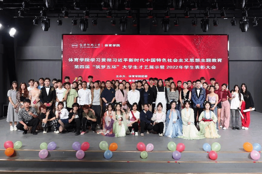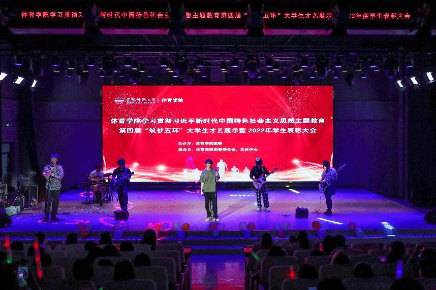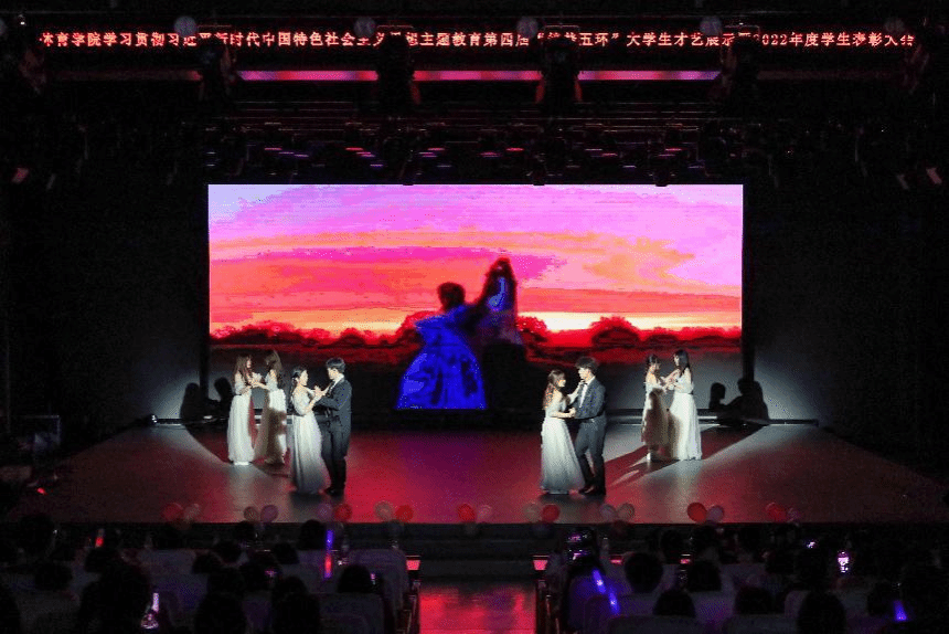 5月13日晚,sunbet申博在传媒学院演播厅举办学习贯彻习近平新时代中国特色社会主义思想主题教育第四届“筑梦五环”大学生才艺展示暨2022年学生表彰大会。学院党委副书记王玮、副院长林秋菊、团委副书记曹益嘉、专职辅导员与各学院师生等300余人一同观看演出。