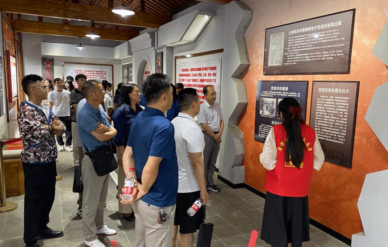 下午,党员同志们发扬不辞辛劳、持续作战的奋斗精神,继续前往怀宁县月山镇,共同瞻仰铁铺岭战斗遗址。沿着周边外墙,大家一路观看铁铺岭战斗事迹,耳边又响起了嘹亮有力的新四军军歌,一起回顾了安庆人民在中国共产党领导下艰苦卓绝的奋斗历程。