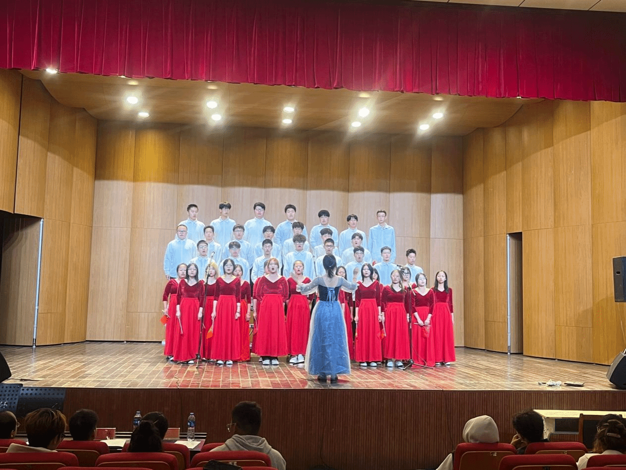 “我们每周都会练习三次以上,尽管有时会出现卡拍不准与节奏走音的问题,我们也从未放弃练习,”体育教育专业2023(5)班的杜子恒说:“我认为今天班级的合唱相较练习时进步显著,虽然有些小瑕疵,但整体效果很不错。”他表示,观看完整场演出使他直观地感受到了红歌的力量,提升了学生们对历史的认知,增强了大家的爱国情怀。