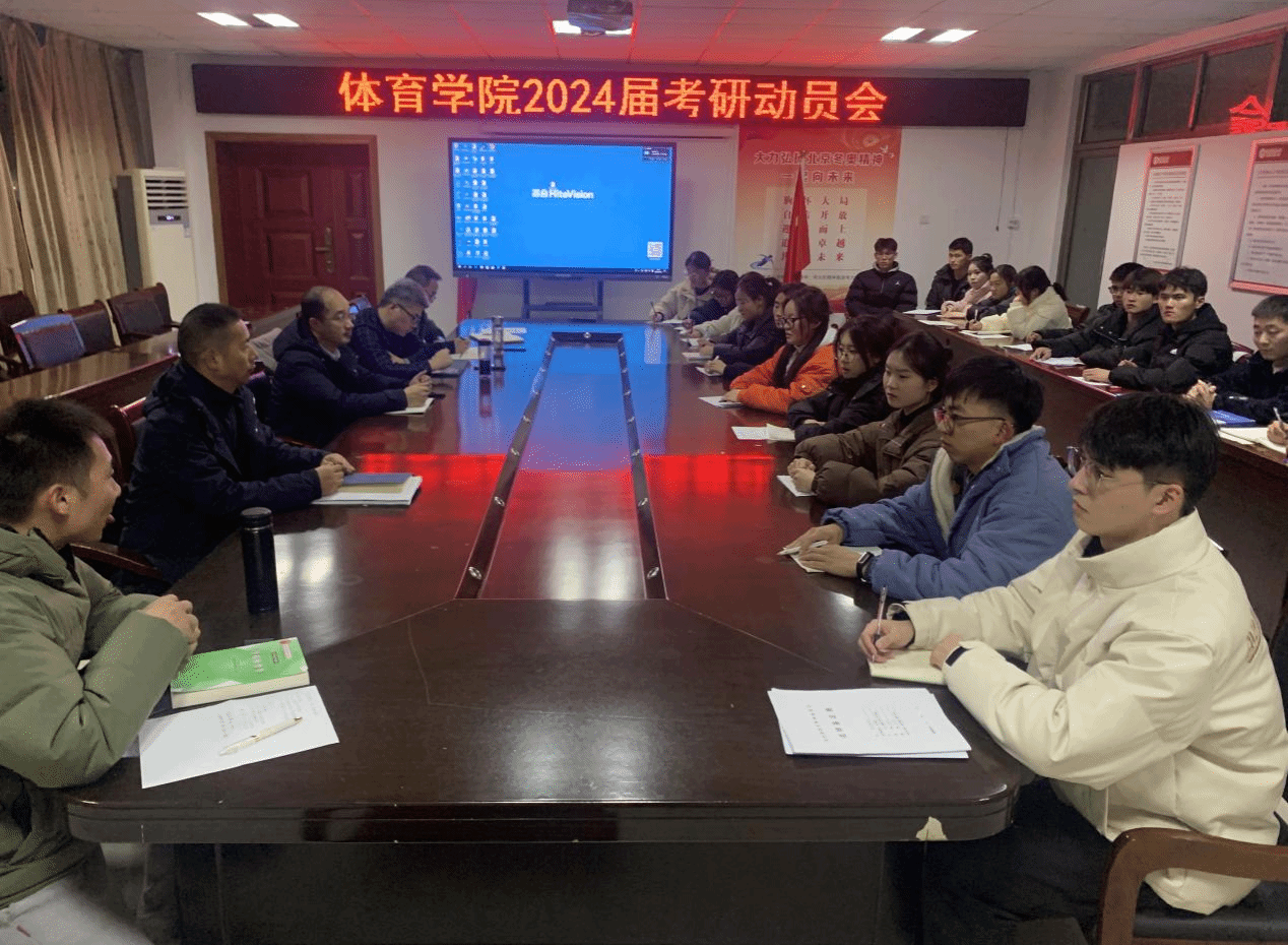 12月12日,sunbet申博在体育馆三楼会议室召开2024届毕业生考研动员会。学院党委副书记王玮、副院长王晓东出席本次动员会并作讲话,教师代表、毕业班辅导员和2024届考研学生代表参加会议。