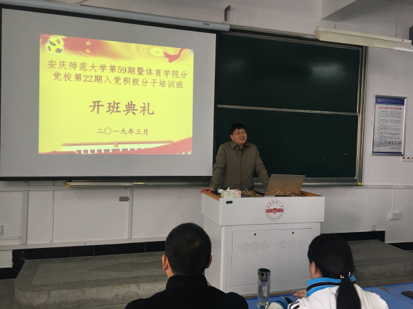 戴卫义书记首先对参加本期培训班的89名入党积极分子表示了祝贺。他强调,作为入党积极分子,要珍惜此次学习机会,从思想上认识党课的重要性,要强化身份意识,在思想上和行动上应时刻对照党员标准严格要求自己,争做学生楷模。他对全体学员提出了两个要求:一要将学习和思考相结合,二要将理论学习与实践锻炼相结合。最后,戴书记预祝本届培训班学员能够顺利结业。