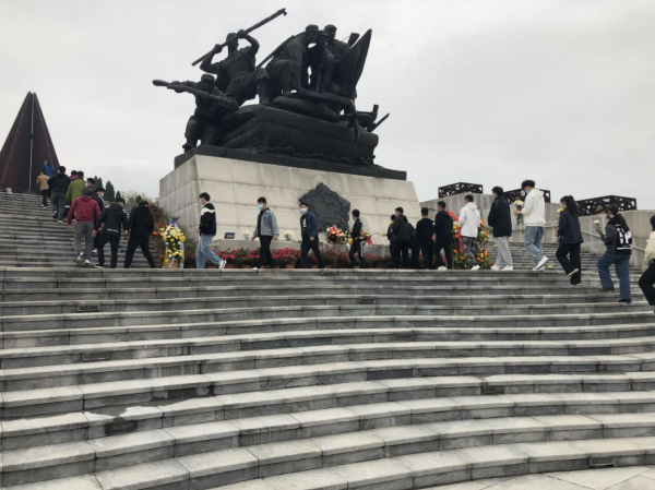 活动中,大家在纪念广场塑像前集体默哀3分钟,敬献了鲜花,向英雄致敬,表达了哀思之情。