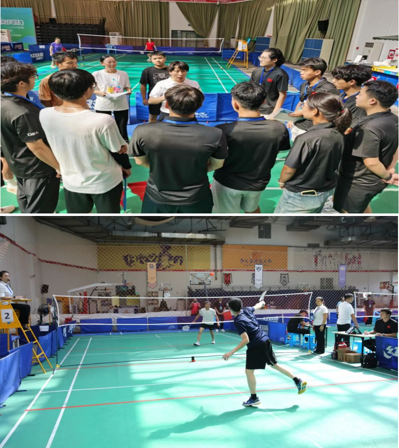比赛前一天,志愿者们身着统一的工作服装,佩戴着鲜明的身份标识,早早到达现场,检查现场布置情况,沟通工作细节,熟悉工作流程。比赛现场,志愿者们按照既定安排,各司其职,分别承担赛事的检录、编排、边执裁、记录等工作。2021级体育教育专业学生高良表示:“这次比赛规格很高,同时也能和国家级裁判共同合作,对自己的专业知识和裁判经历都有所提升”。2021级表演(体育艺术表演方向)专业学生袁李婷表示:“尽管天气热辣难耐,但无法阻挡参赛者的运动热情,很高兴能以一名学生党员的身份为群众体育赛事服务”。