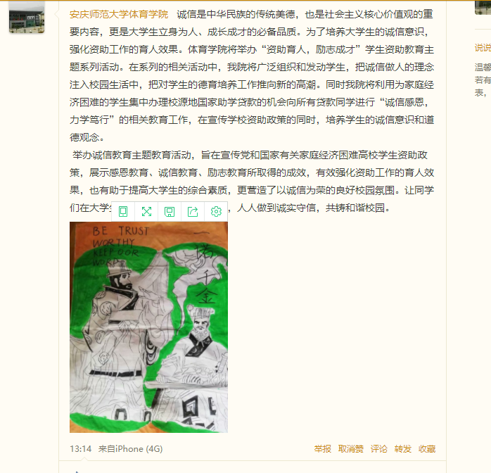 (学院官方微博进行宣传诚信教育)