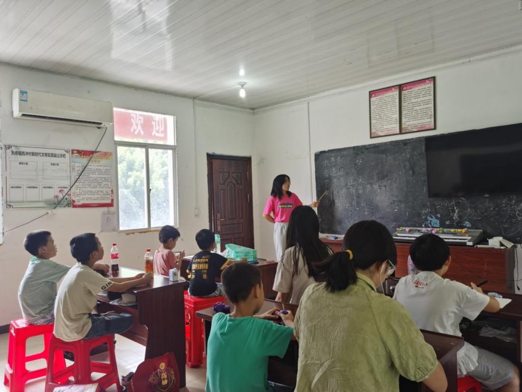 sunbet申博学生暑期三下乡社会实践服务队走进了安庆市太湖县天华镇西冲村。在村子里教学的这段生活中,队长刘会茹带着队员们和村子里的小朋友们一起进行了歌曲和舞蹈的学习。