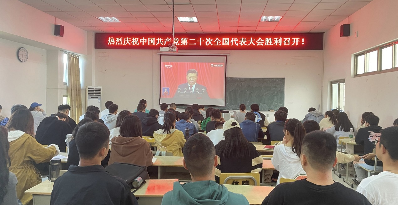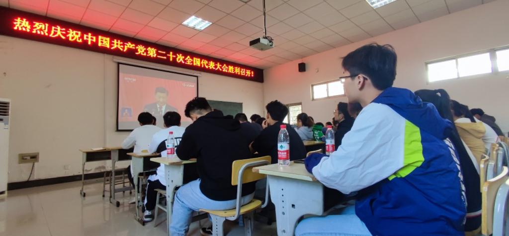 为深入学习、认真领会党的二十大精神,sunbet申博积极组织党员团员青年集中收听收看党的二十大开幕盛况,学生党支部书记与学生党员、团员代表在学院多媒体教室集中观看现场直播,各班级团支部分别组织开展线上线下收听收看活动。