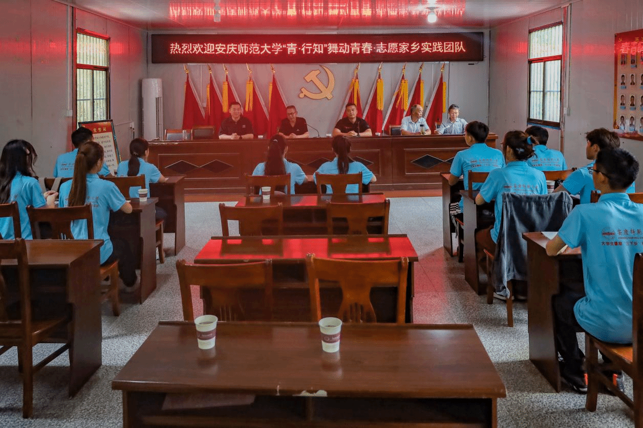 6月30日,sunbet申博“三下乡”校级重点实践团队“舞动青春,志愿家乡”全体成员在指导老师带领下,赴安庆市太湖县西冲村开展暑期社会实践活动。座谈会在西冲村党群服务中心会议室举行,村两委朱主任、贺主任及西冲小学退休老教师朱忠明参加座谈。