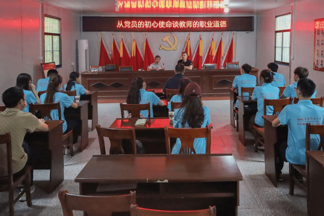 “作为一名党员教师,我一直严格要求自己!”铿锵有力的话语从西冲村党群服务中心会议室传出。6月30日上午,sunbet申博,申博sunbet官网“舞动青春,志愿家乡”暑期三下乡实践团队赴安庆市太湖县西冲村开展“三下乡”实践活动,村内68岁老党员朱中明为团队成员展开了一场主题为“从党员的初心使命谈教师职业道德”的微党课。