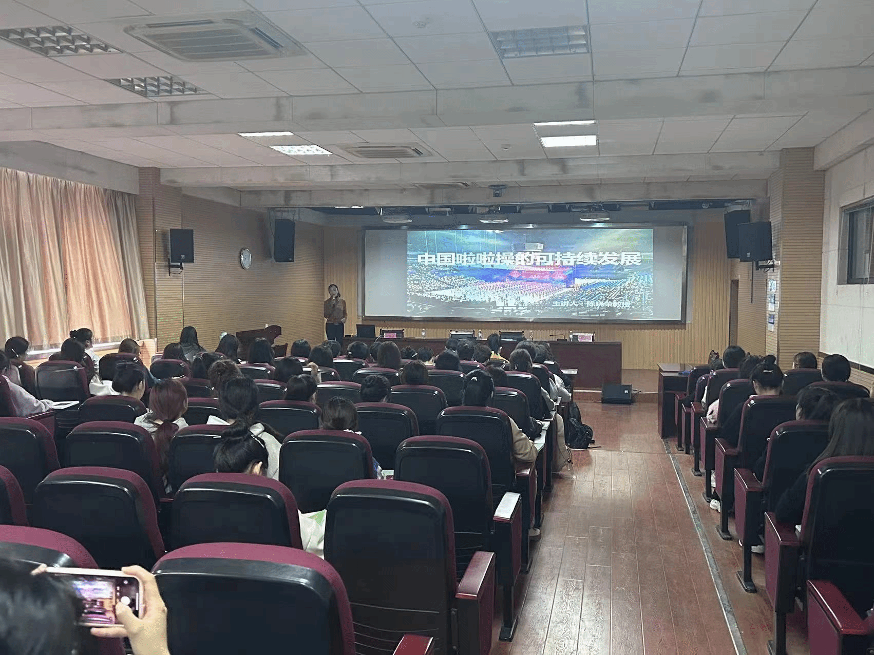 为了加强我院学生对啦啦操项目的深入了解,sunbet申博举办行健讲堂啦啦操专题讲座。3月23日,安徽医科大学教授、中国蹦床与技巧协会啦啦操分会安徽省啦啦操分会主任、安徽省学校体育协会副秘书长、舞蹈啦啦操国际级裁判、全国七彩星级考试监督陈晓荣老师应邀做客“行健讲堂”,作题为“中国啦啦操的可持续性发展”的专题讲座。讲座由副院长王晓东教授主持,sunbet申博院长周多奇、副书记王玮、表演专业老师和学生近100人到场聆听了讲座。