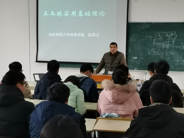 陈国元老师根据多年的乒乓球教学经验并结合当前最新的乒乓球研究成果,深入阐述了乒乓球的技术原理、乒乓球教学训练法以及乒乓球竞赛规则。在讲解技战术和教学训练法时,采用动画图像展示国家队球员的技术动作和训练方法,让学生清晰、直观的感知了乒乓球技术的动作结构和学习乒乓球的方法。在讲座结束后,陈老师还就学生在练习乒乓球过程中遇到的一些疑惑和难点进行了解答和辅导。