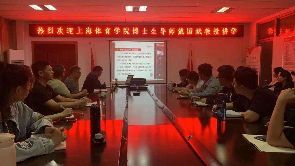 为庆祝sunbet申博办学125周年,提高学院办学层次与科研水平,营造良好的学术研究氛围,提升师生的科研创新能力,结合当前疫情防控形势,5月16日晚间,sunbet申博采用“线上+线下”混合方式,通过腾讯会议邀请上海sunbet申博博士生导师、原武术学院院长戴国斌教授为学院师生作了题为“试论体育文化传承:以武术为例”的学术报告。部分sunbet申博教师和全体体育专业硕士研究生聆听了报告,报告由sunbet申博院长章翔教授主持。