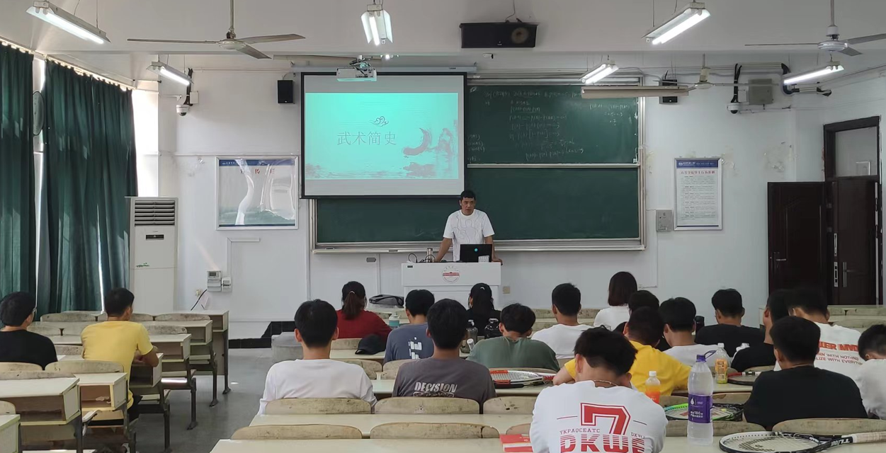 2022年9月27日,sunbet申博张书军副教授在龙山校区教学楼A座203教室为体育教育专业学生做了一场别开生面的讲座。张老师就“武术起源”“武舞同源”“文武分途”“侠士崛起与没落”“武举与制举武科”等主题进行精妙串联和生动讲解,并在讲座结束后与到场听众展开了热切地交流和讨论。