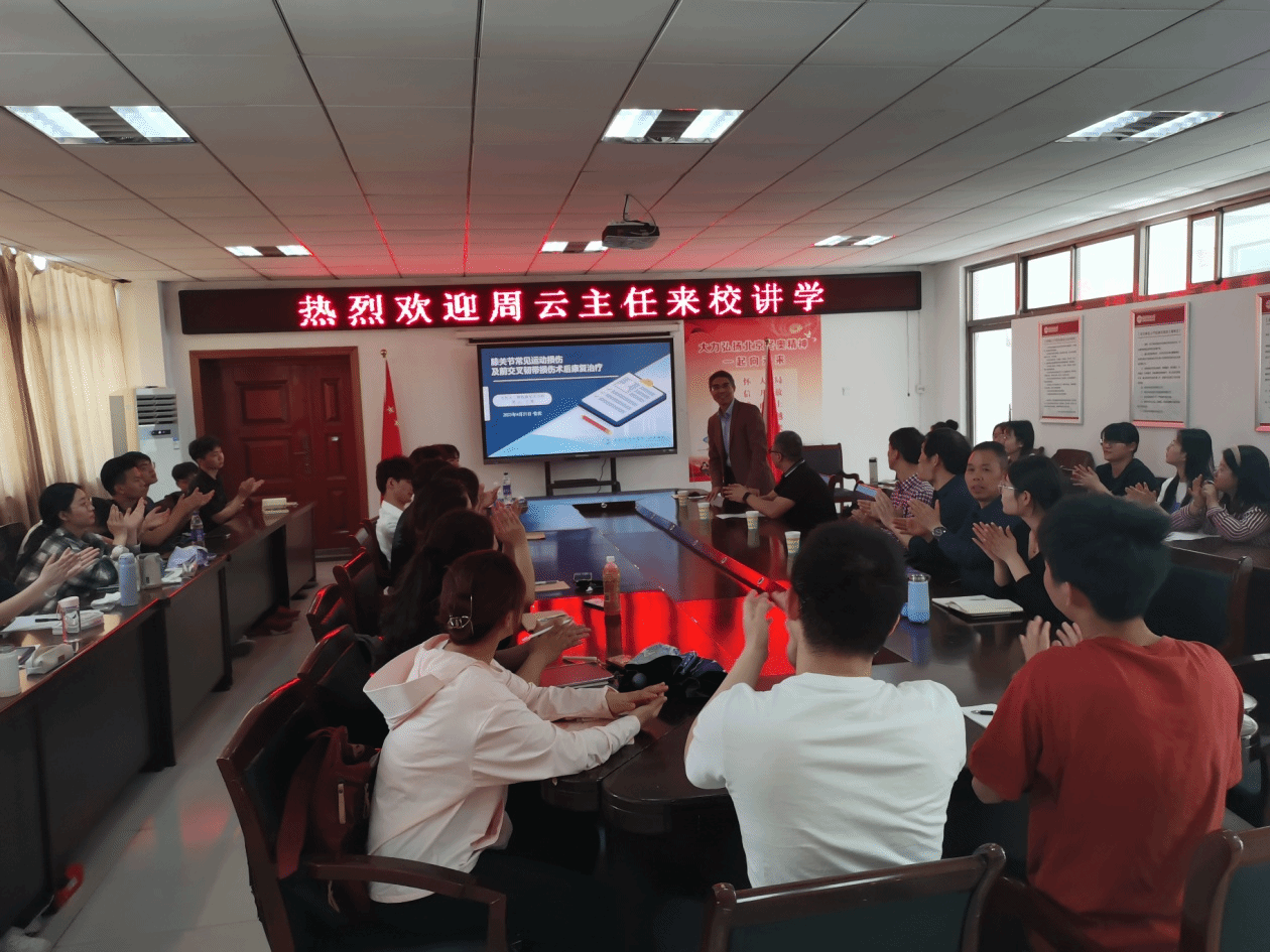 4月21日下午,安徽医科大学第二附属医院康复医学科主任周云教授在sunbet申博三楼会议室作了一场题为《膝关节常见运动损伤及前交叉韧带损伤术后康复治疗》的学术讲座。讲座由sunbet申博副院长王晓东教授主持,sunbet申博2020级运动康复专业全体学生和相关专业教师聆听了报告。