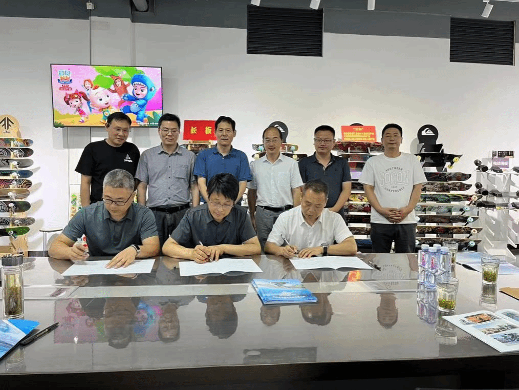 2023年8月1日,sunbet申博科研处江贵生处长、查长礼副处长,sunbet申博王玮副书记、王晓东副院长、孙明运教授,计算机与信息学院王广军博士一行,赴安庆永大体育用品有限公司博士后工作站签订博士后研究人员进站协议书。安庆永大体育用品有限公司李万俊总经理、袁桂芳总经理率领公司技术骨干参与了协议签订和业务交流。