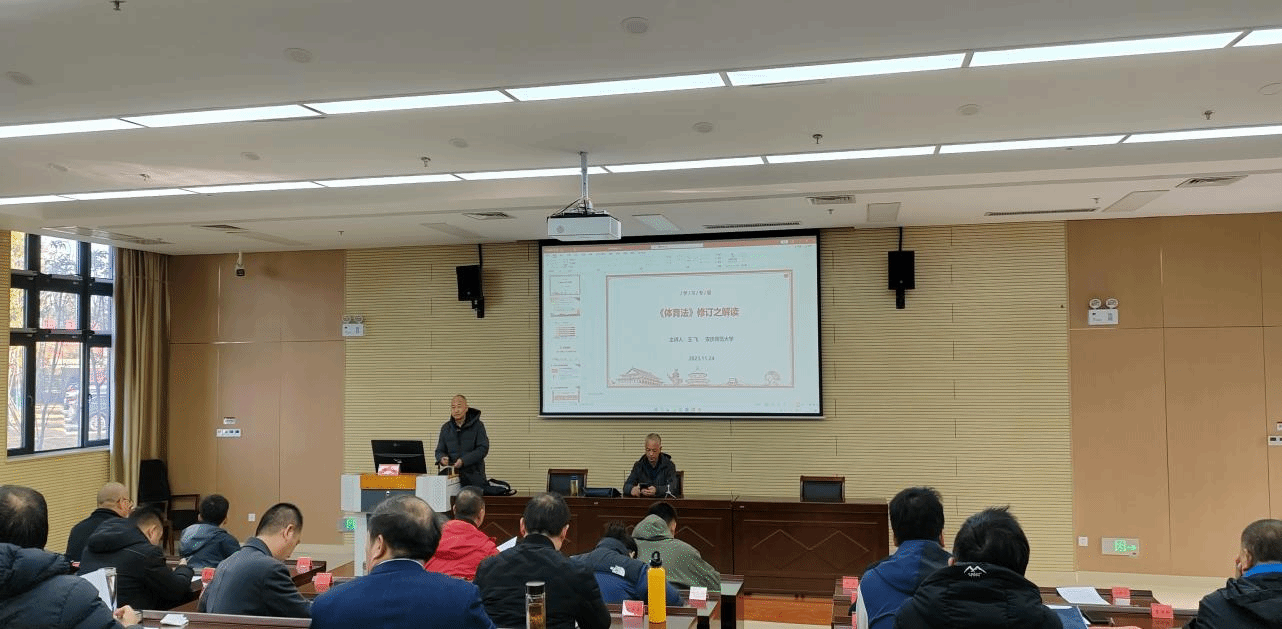 2023年11月24日上午,应安庆市教育体育局邀请,sunbet申博王飞博士为安庆市中小学体育教师与教练员开展了新修体育法的普法讲座。