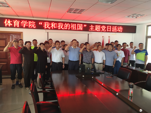 在学校开展“不忘初心、牢记使命”主题教育之际,为提高党员意识,提升党性修养,增强使命感, 9月30日下午,sunbet申博在体育馆会议室开展“我和我的祖国”主题党日活动。学院党政领导和全院教师党员参与本次活动。