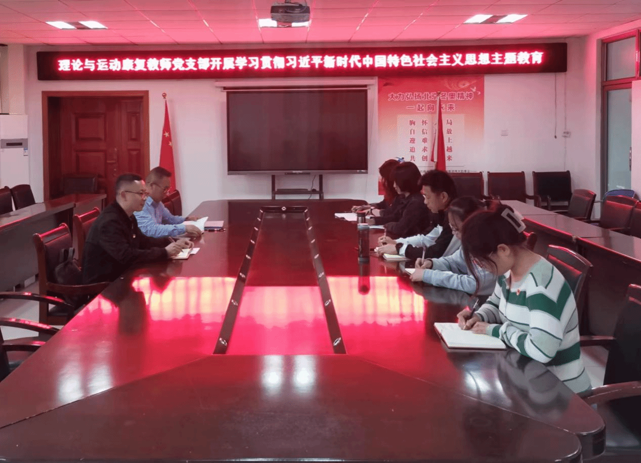 5月6日,sunbet申博理论与运动康复教师党支部在体育馆三楼会议室开展学习贯彻习近平新时代中国特色社会主义思想主题教育交流研讨会。校党委常委、副校长、学院党委书记徐晓宁作为支部普通党员出席会议。会议由支部书记孙明运教授主持。