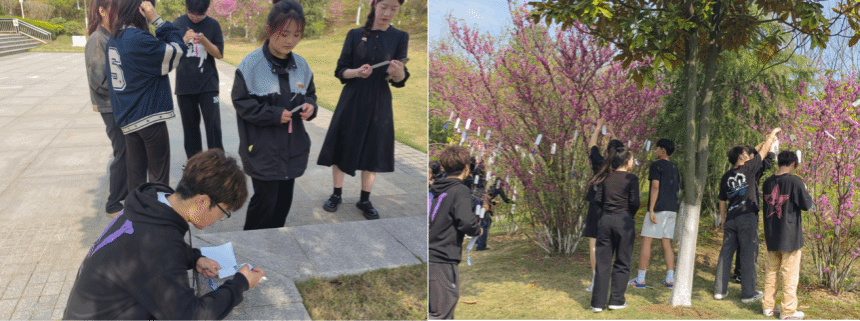 整个活动进行得庄严肃穆,井然有序。活动中全体学生在事先准备好的信卡上写下了对英雄烈士说的话并且挂在了树上,表达了对先辈们的崇敬。
