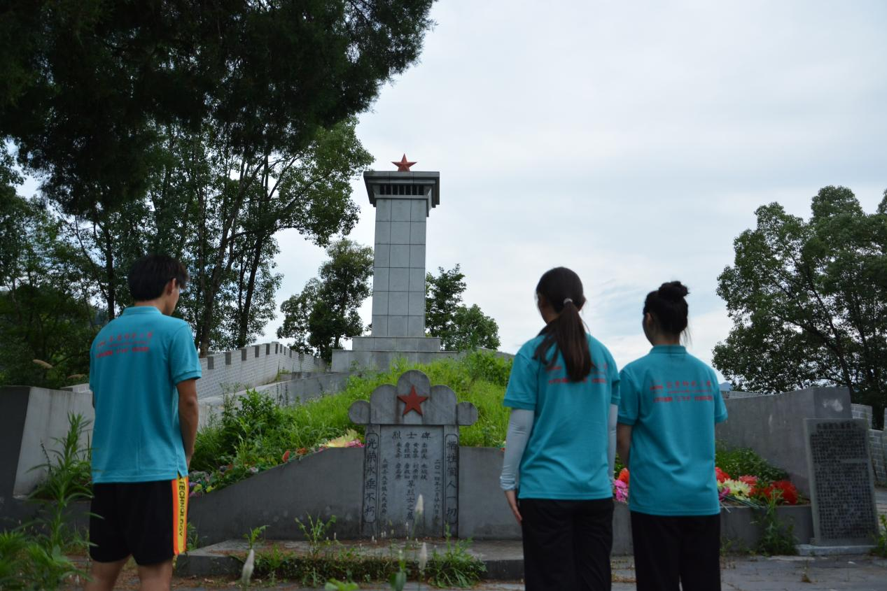 走过蜿蜒曲折的山路,跨过几节斑驳的台阶,一座刻着“人民英雄永垂不朽”的纪念碑跃然入眼,纪念碑旁的墓冢里,长眠着八位革命烈士。7月9日下午,sunbet申博,申博sunbet官网“舞动青春、志愿家乡”乡村振兴暑期社会实践团一行,在太湖县天华镇西冲村驻村第一书记张军、村部工作人员郭鹏的陪同下,来到天华镇马庙烈士墓,缅怀先烈、学习革命精神。