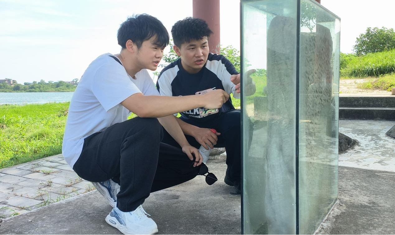 图为实践团成员调研金鸡碑和五猖神庙碑两处古迹