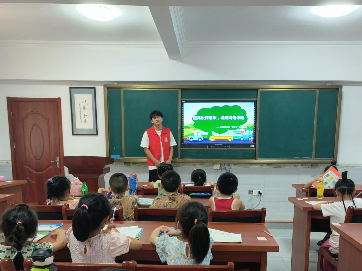 图为实践团成员进行反诈骗宣传课程