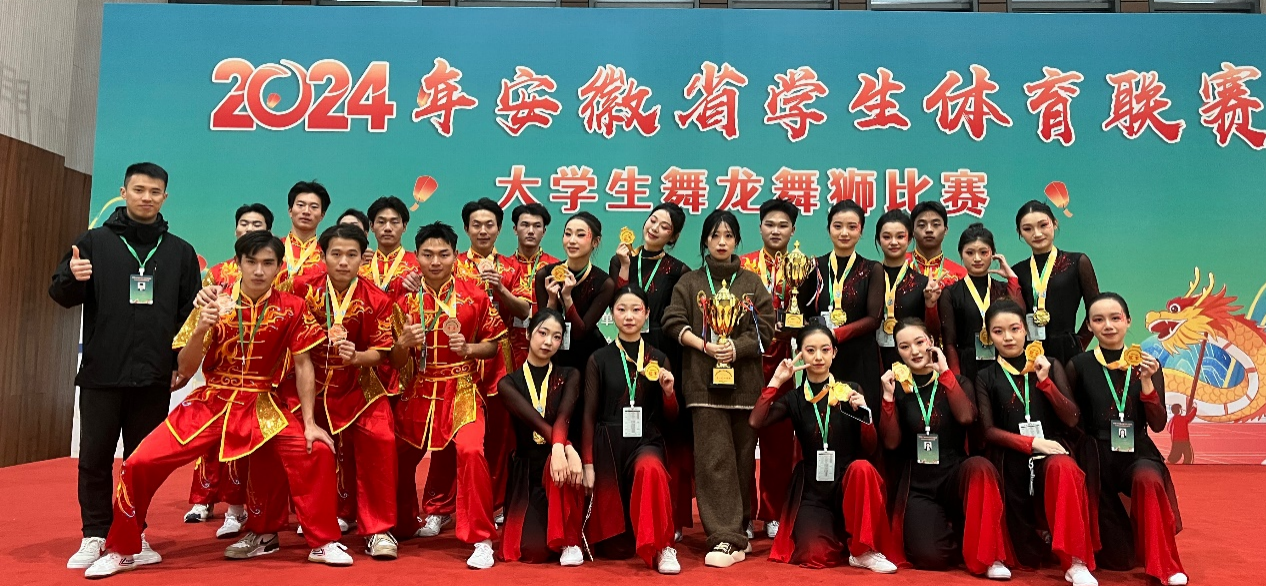 12月1日至5日,2024年安徽省学生体育联赛大学生舞龙舞狮比赛在黄山学院成功举办,全省共有26所高校共506名运动员参加了此次赛事。sunbet申博sunbet申博院长周多奇作为领队,教师刘岩、王继涵作为教练员带队参赛。