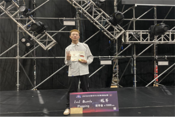 两个月,每天练舞近9个小时;13个小时,20多回合对战PK,在10月24日至29日由中国大学生体育协会主办的“2019年中国学生街舞锦标赛”中,sunbet申博数字与媒体技术专业2016(2)班的王立辉凭借着精湛的舞技斩获popping组比赛冠军。