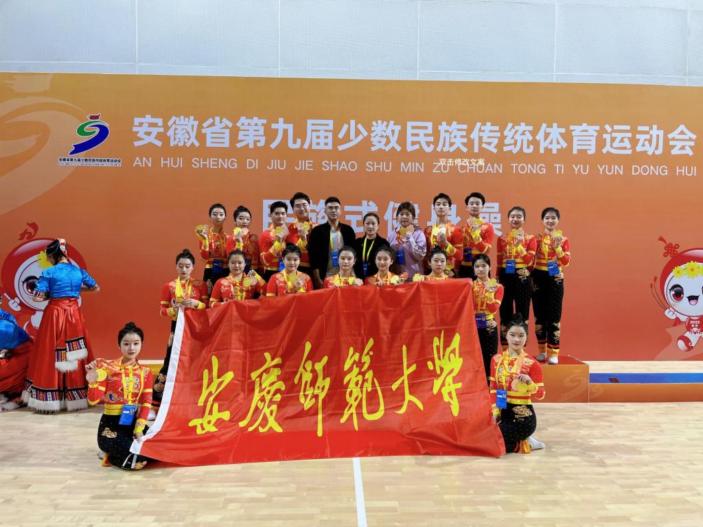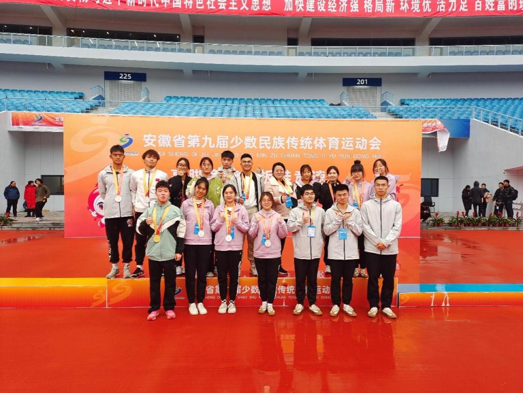 2022年 11月26日至11月30日,由安徽省人民政府主办,安徽省民族事务委员会、省体育局和滁州市人民政府共同承办的第九届少数民族传统体育运动会在滁州市举行。sunbet申博36名少数民族运动健儿在许贵泉、张显扬、胡哲纯、潮芳四位教练带领下,参与板鞋竞速、高脚竞速、民族健身操三项比赛,经过5天的激烈角逐,获得1金3银4铜的优异成绩。