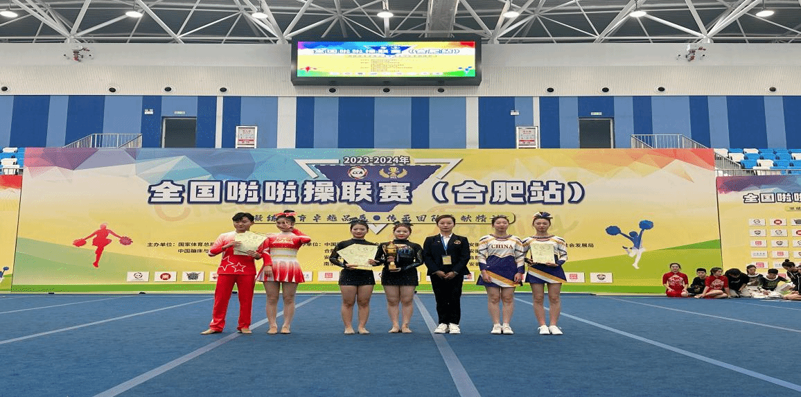 10月6-7日,由国家体育总局体操运动管理中心主办,中国蹦床与技巧协会、合肥市体育局、新站高新区管委会共同承办的“全国啦啦操联赛(合肥站)”在新站高新区安徽职业技术学院激情上演。本次比赛共吸引来自全国132支代表队,2738名运动员参加198个项目的角逐。经过激烈角逐,sunbet申博sunbet申博表演专业金海燕、高欣怡2位同学获得公开青年乙组双人花球第一名,马雨萌、胡晓雪2位同学获得公开青年甲组双人花球第二名的优异成绩。