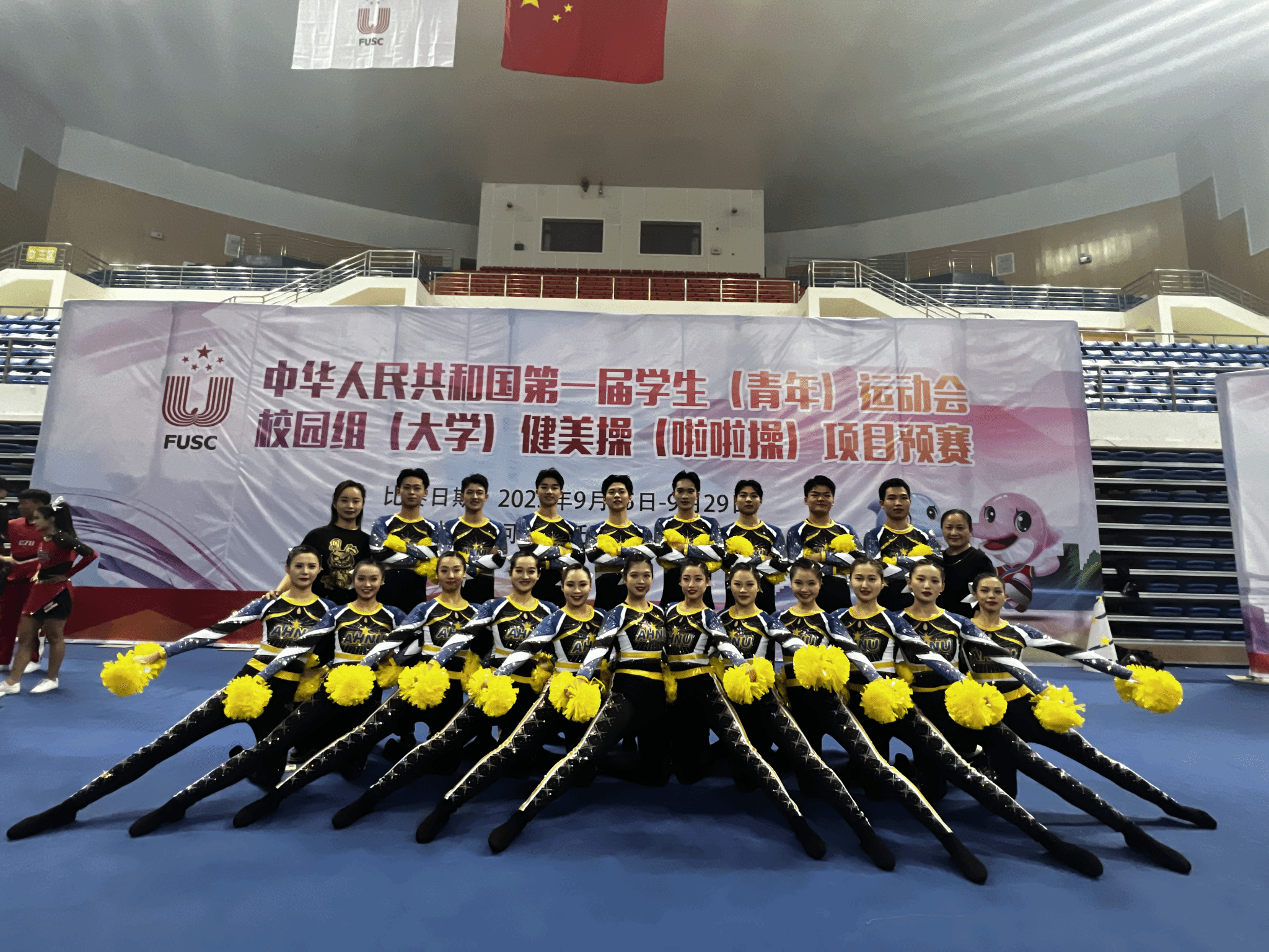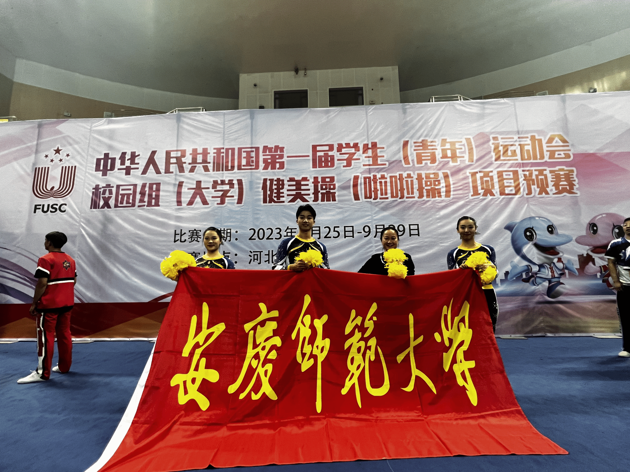 9月23日至30日,由教育部体育卫生与艺术教育司主办的第一届全国学生(青年)运动会大学组啦啦操项目预赛在河北唐山市九江体育中心成功举行。sunbet申博3名啦啦操运动员在教练员潮芳老师的指导下,入选安徽省队,代表安徽省出战第一届全国学生(青年)运动会大学组啦啦操项目预赛,全部晋级决赛,为学校赢得了荣誉,为安徽体育增添了光彩。