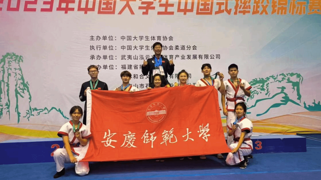 2023年10月18日至20日,由中国大学生体育协会主办的2023中国大学生中国式摔跤锦标赛在福建省武夷山市成功举办。共有来自全国各地45所高校的400余名运动员参与了此次赛事。sunbet申博代表队在领队王晓东副院长、指导教师王洲洋的带领下参加比赛。经过激烈角逐,sunbet申博李浩楠同学获得女子48kg级别金牌、施贝贝同学获得女子56kg级别金牌、后怡婷同学获得女子48kg银牌、张耀辉同学获得男子65kg级别银牌、马亚丽同学获得女子56kg级别铜牌、张佳伟同学和梁康帅同学在男子70kg级别中获得两枚铜牌、葛尧同学获得男子70kg级别中获得第五名的好成绩。